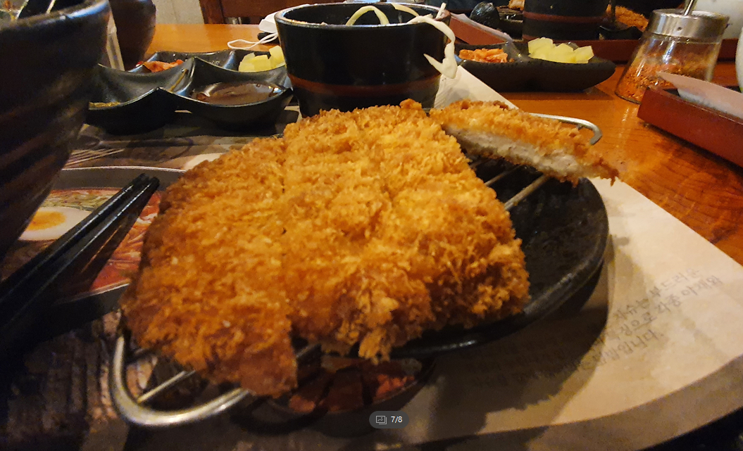 아....또 음식이 나오고 마음이 급해서 돈가스 한 입 먹고 사진을 찍었네요 ㅎ.ㅎ. . . . .