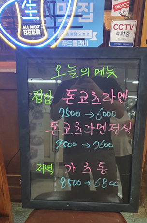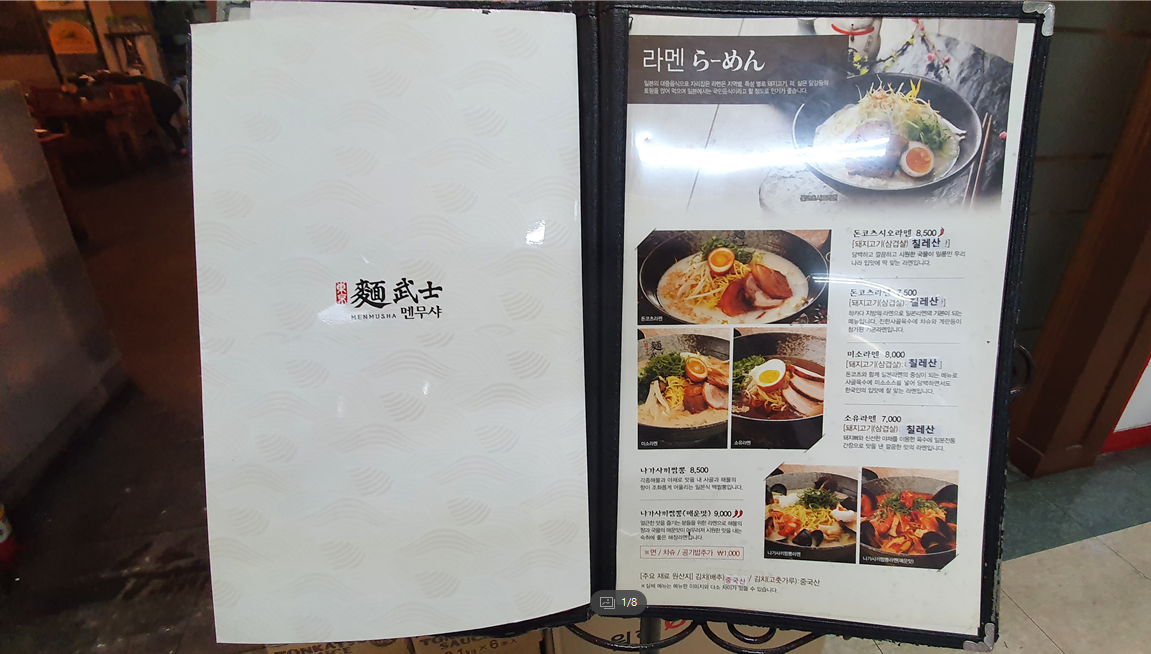 멘무샤 문 앞에는 이렇게 메뉴판이 세워져있어요!
