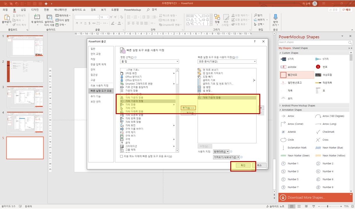 8. Add Shape : 선택된 개체 파워목업에 저장하기(파워목업이 궁금하시면 이전 글에서 파워목업 관련 글을 확인하세요!)