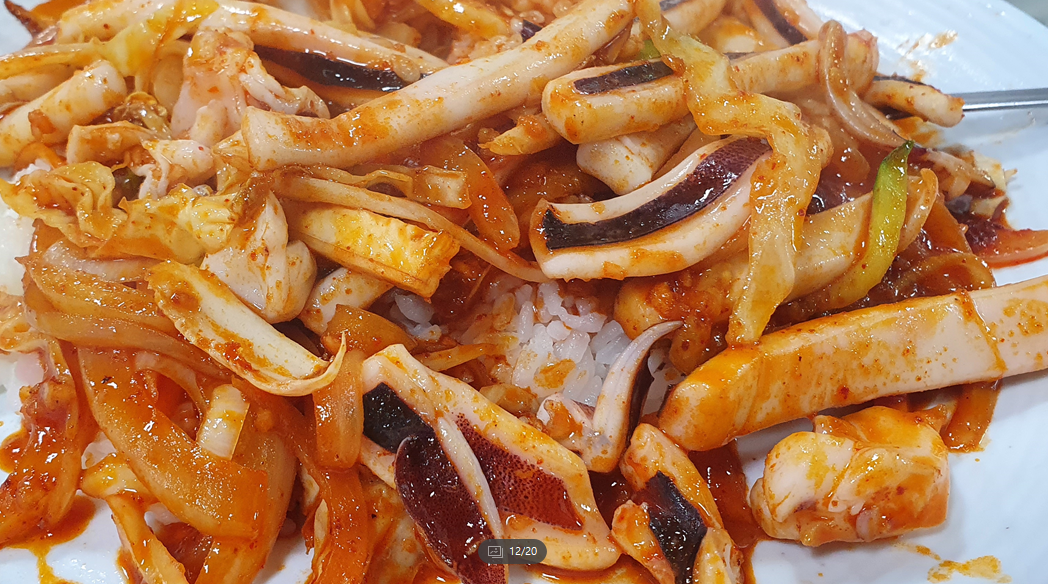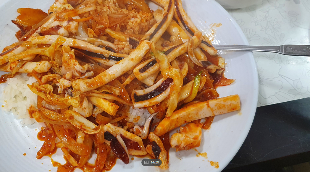 오징어덮밥은 옛날짜장우동 가게에서 제일 비싼 메뉴(8,000원)에요! (밥종류에서)