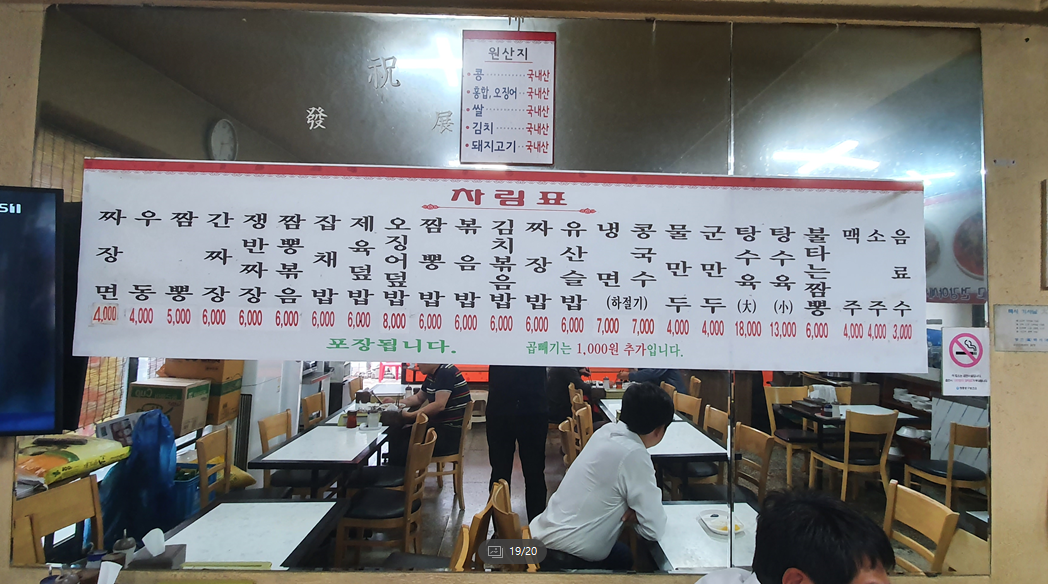 중국 음식점처럼 짜장 짬뽕 탕수육 등등 핵심 요리가 딱 있어요!