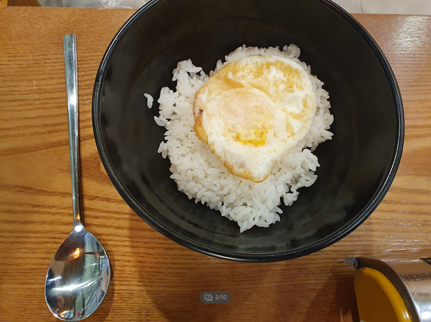 밥이 나왔는데, 밥에는 잘익은 계란후라이가 얹혀져서 나오더라구요!