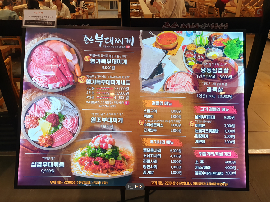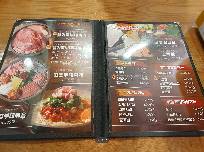 부대찌개 종류가 역시 메인이구요. 여러 사이드메뉴가 있는데,