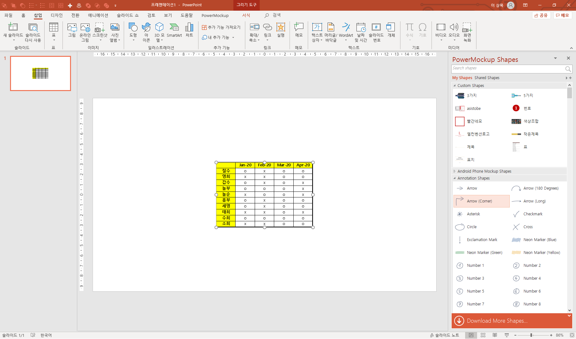 첫번째는 피피티에 파일을 첨부한 후 작성하는 방식이고,