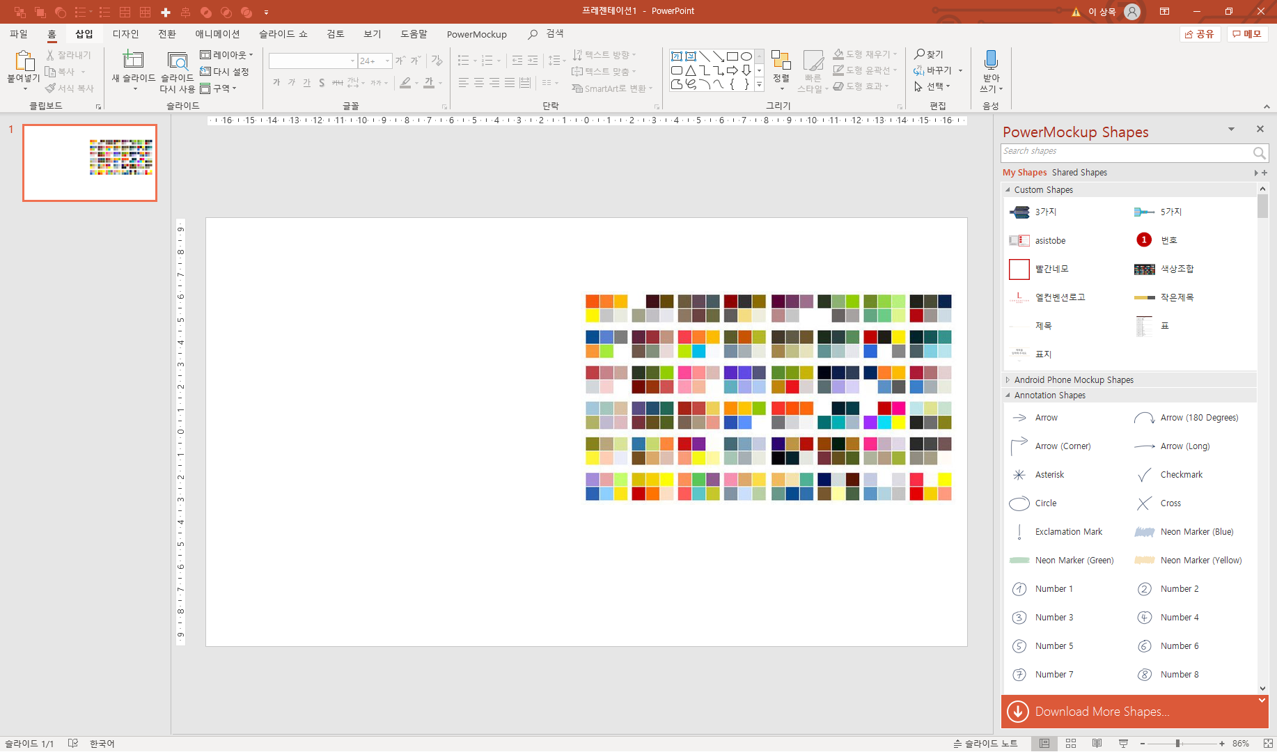 먼저 구글에서 검색한 배색표 중 하나를 파워포인트 슬라이드로 가져왔습니다.