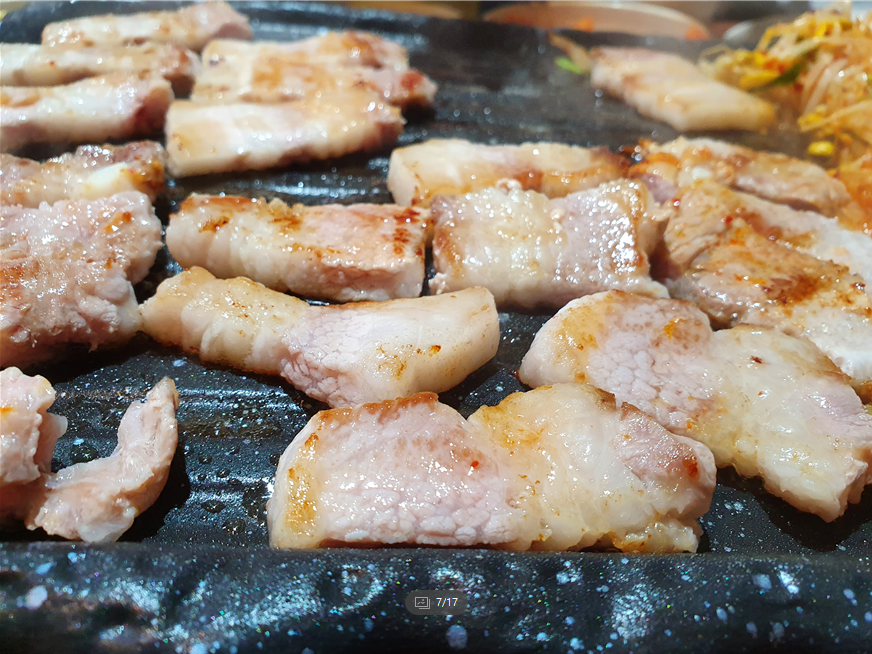 아 그런데 너무 멀리서 찍어서 그런지 삼겹살 비쥬얼이 조금 죽는거 같은데요?