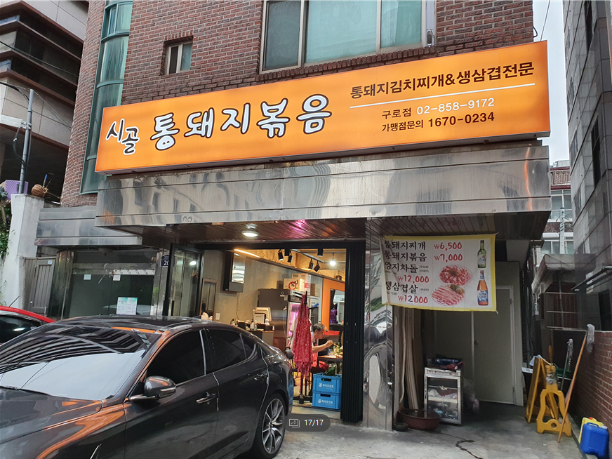 시골통돼지 구로점은 번화가에 위치해 있지는 않아요