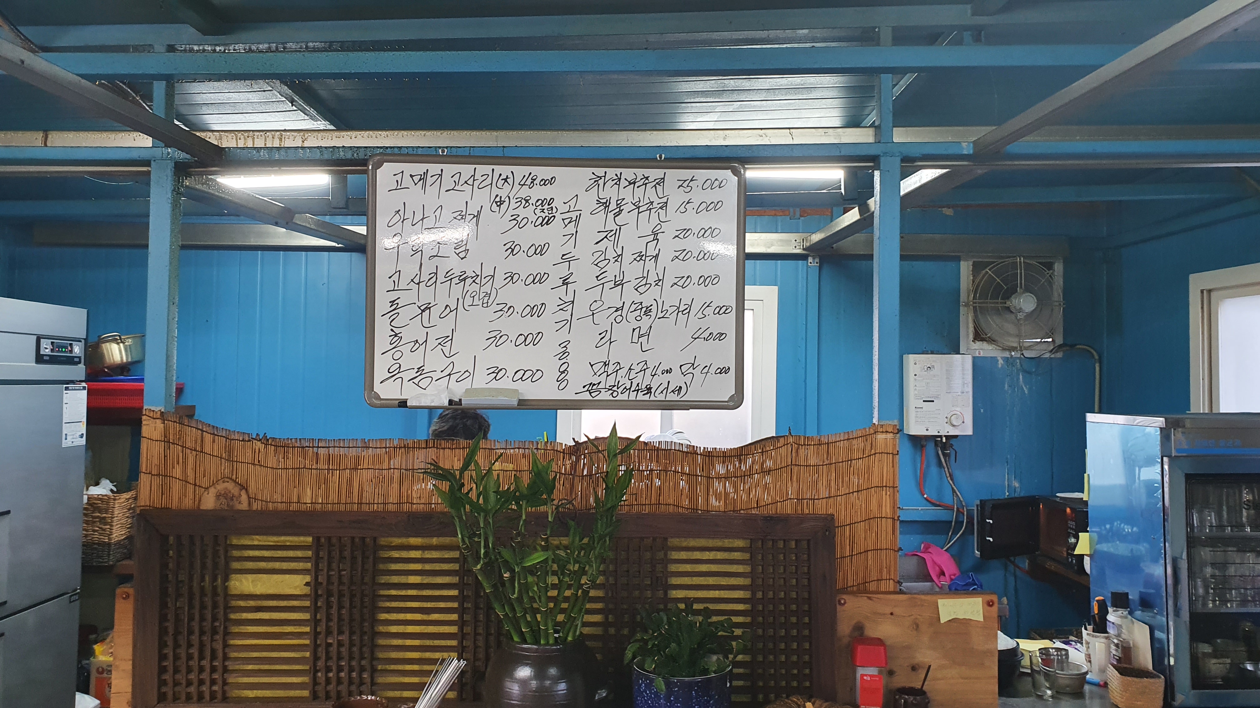 볼레낭개할망집 메뉴판입니다.! 제주도 답게 해산물이 주를 이루고 있습니다.