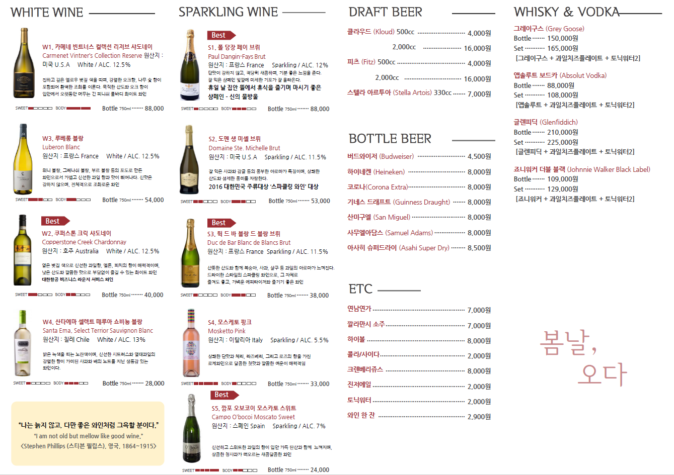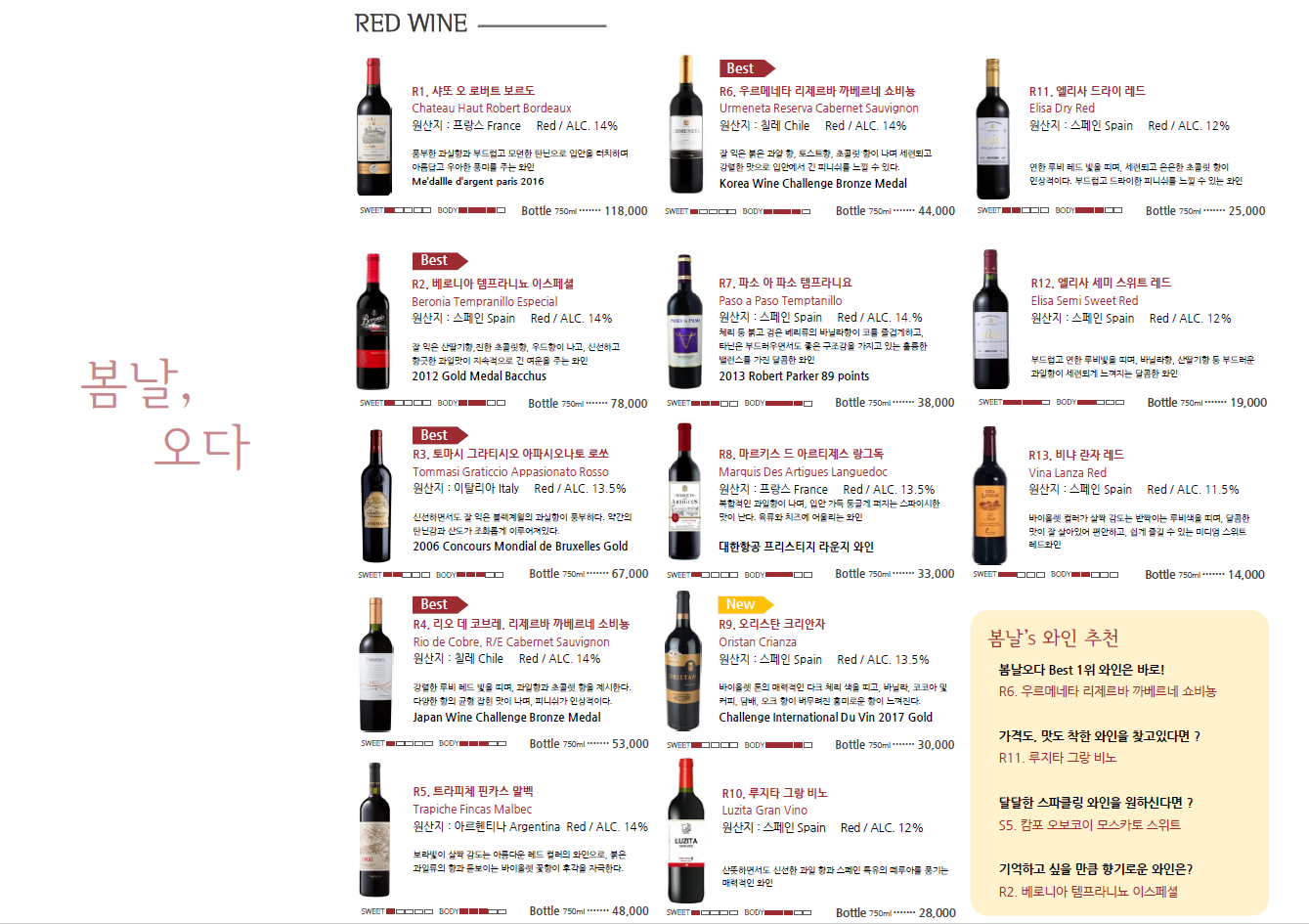 천천히 하나하나 봄날오다 와인을 다 먹어봐야겠어요