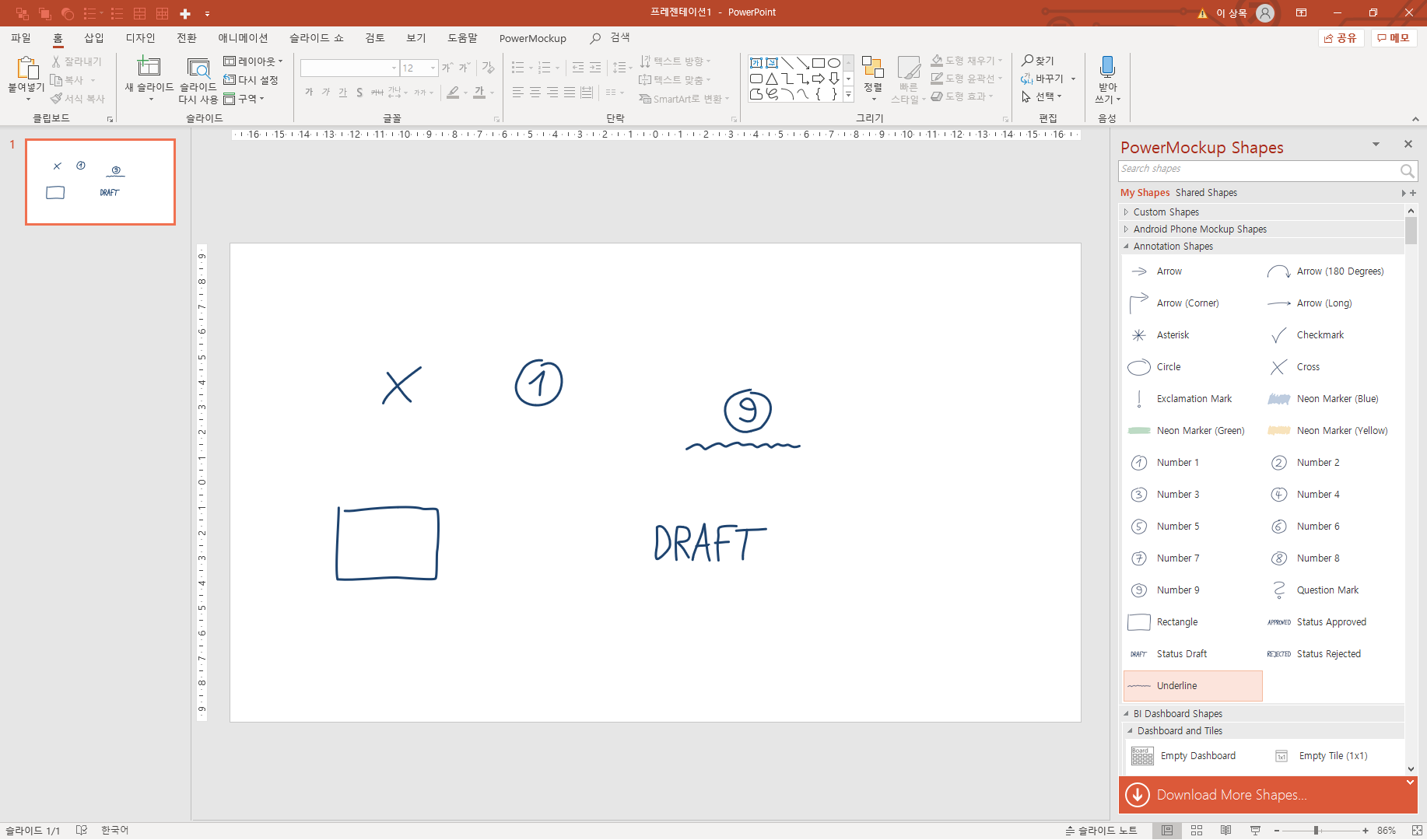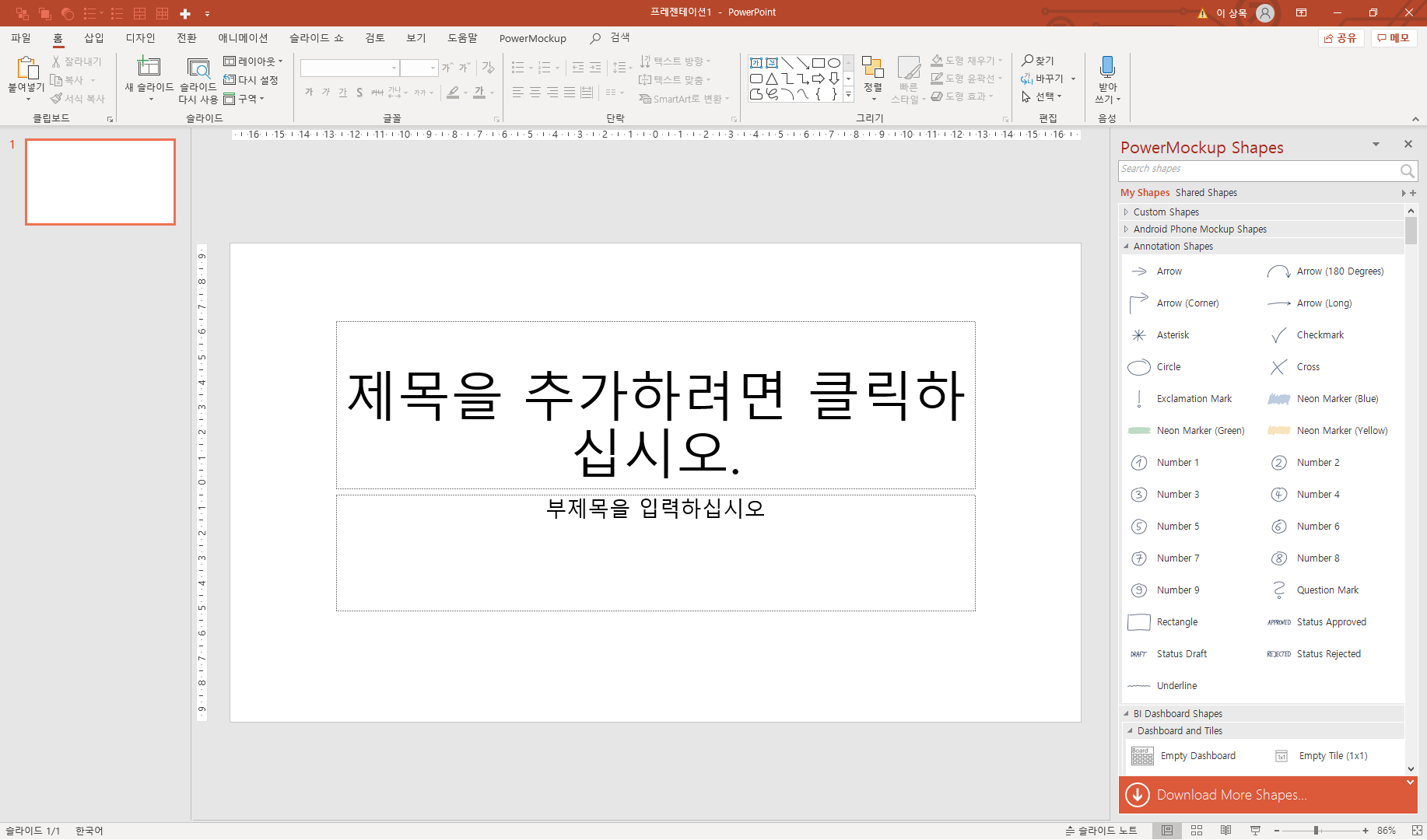 "PowerMockup Shapes"라는 영역이 생겨납니다!