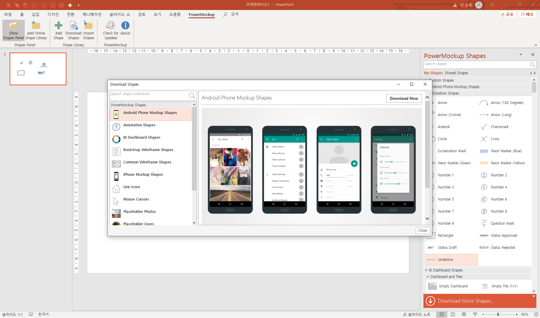 파워목업 리본탭에 들어가서 "Download Shapes"를 클릭하면